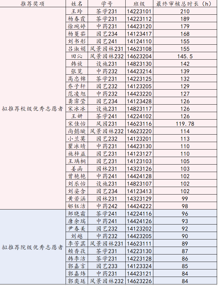 审核,以本年度志愿服务折算总时长为主要依据,拟推荐王玲等27名本科同学申请成人视频优秀志愿者,邹晓霜等10名本科同学为成人视频-久久成人-免费做爱视频