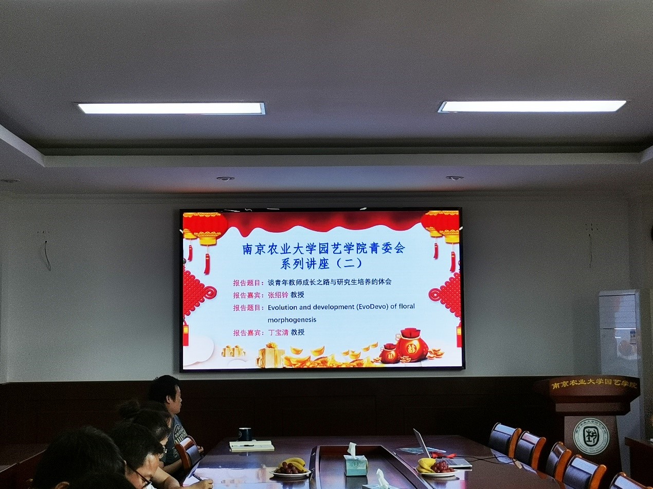 青委会系列讲座(二)在生科楼B4003会议室举行。本次学术论坛邀请了青委会顾问、果树学科点点长张绍铃教授和观赏园艺学科丁宝清教授分别就《谈青年教师成长之路与研究生培养的体会》和《Evolution and development (EvoDevo) of floral morphogenesis》为题与在座的20余名青年教师展开了深入的交流。本次学术论坛由成人视频