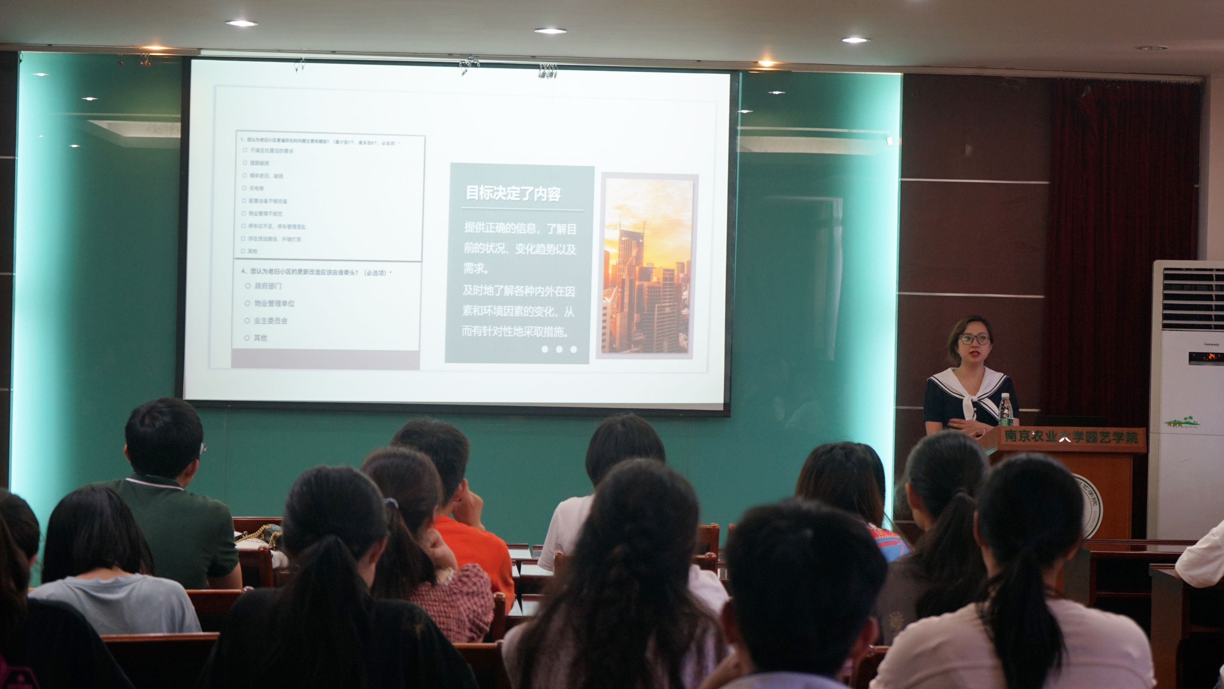 殷敏对社会实践中调研相关知识进行梳理讲解。她首先介绍了社会调查和田野调查的含义,接着以目的、对象、方式和内容等板块详细介绍了调研的目标体系,并强调在调研过程中表明自己的学生身份可以增强有效沟通,而信息的及时整理有利于后期的分析调查。最后,她嘱咐大家在社会实践调研过程中保持团队行动并注意安全。