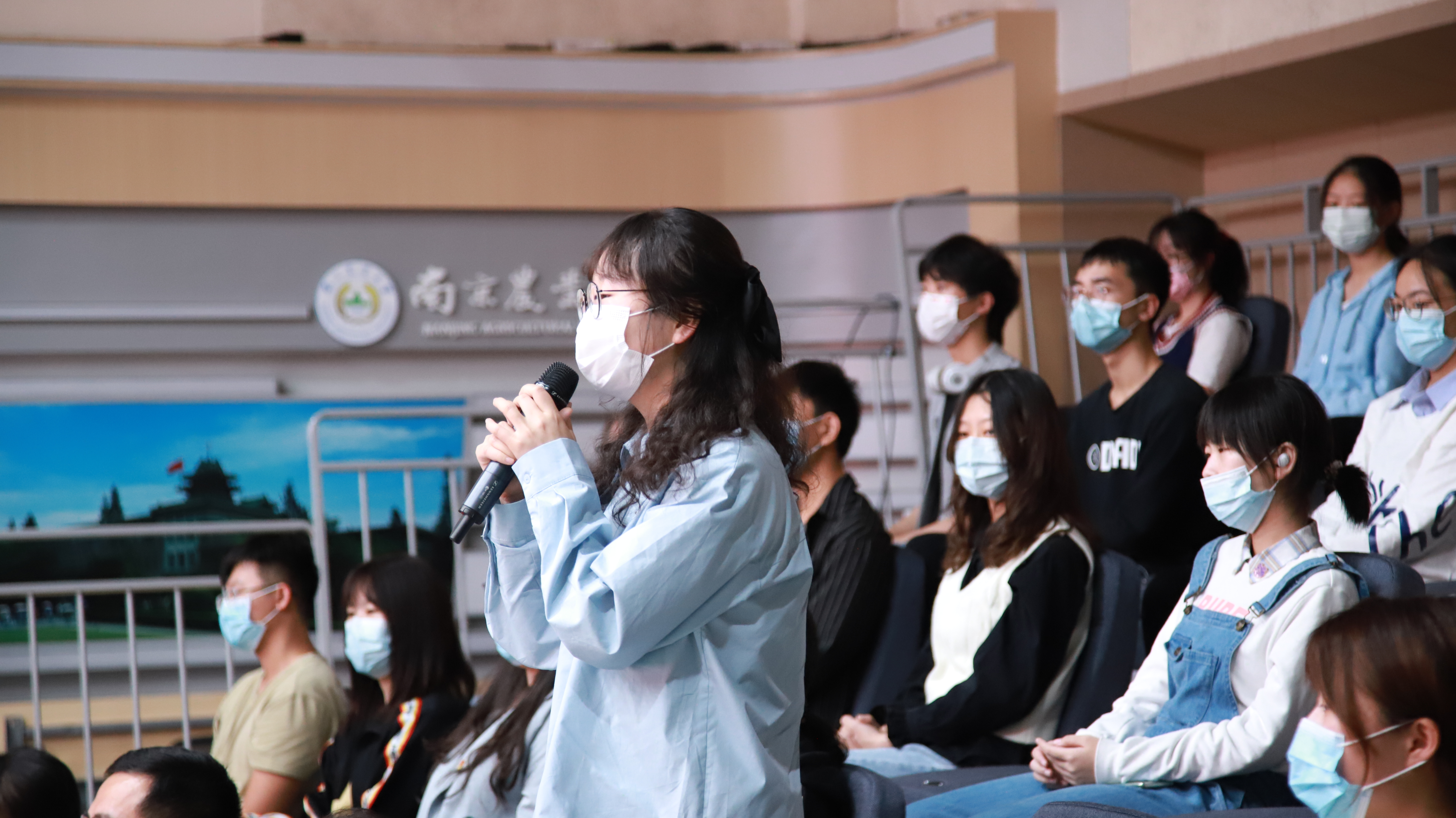 教师房亚萍为在座师生带来精彩课程。房亚萍在授课中以雨花台烈士陵园九位烈士群雕为引,介绍雨花英烈精神内涵、雨花巾帼英烈群体特征,引用恽代英、邓中夏等人的名言详细地讲述了雨花英烈精神具体表现的深刻内涵,即崇高理想的信念、高尚的道德情操、为民牺牲的大无畏精神(“两高一大”精神)。房亚萍强调,“两高一大”的精神实质就是中国共产党人的初心和使命,雨花英烈的牺牲精神的启示就是要坚定理想信念,锤炼党性修养,脚踏实地奋斗。当代大学生应当永志不忘英烈为之献身的革命初心,传承红色力量,弘扬雨花英烈精神,撑起祖国的美好未来。授课结束后,同学们热情与房亚萍老师进行互动,活动结束后同学们也将结合雨花英烈精神的学习,用文字形式记录活动感悟,并在10月下旬第二场活动中进行分享和交流。