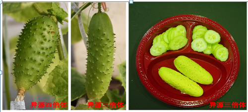 酸黄瓜是黄瓜的近缘野生种,具有栽培黄瓜所缺乏的对多种病害的抗性,如抗霜霉病、蔓枯病、根结线虫等,且果实极酸,富含维生素C(Vc含量>210mg/kg鲜重)。自然条件下,酸黄瓜与栽培黄瓜无法杂交获得后代,陈劲枫教授团队利用胚胎拯救和染色体加倍等现代生物技术手段,成功将酸黄瓜与栽培黄瓜杂交,获得了国际上迄今唯一成功的黄瓜种间杂种。