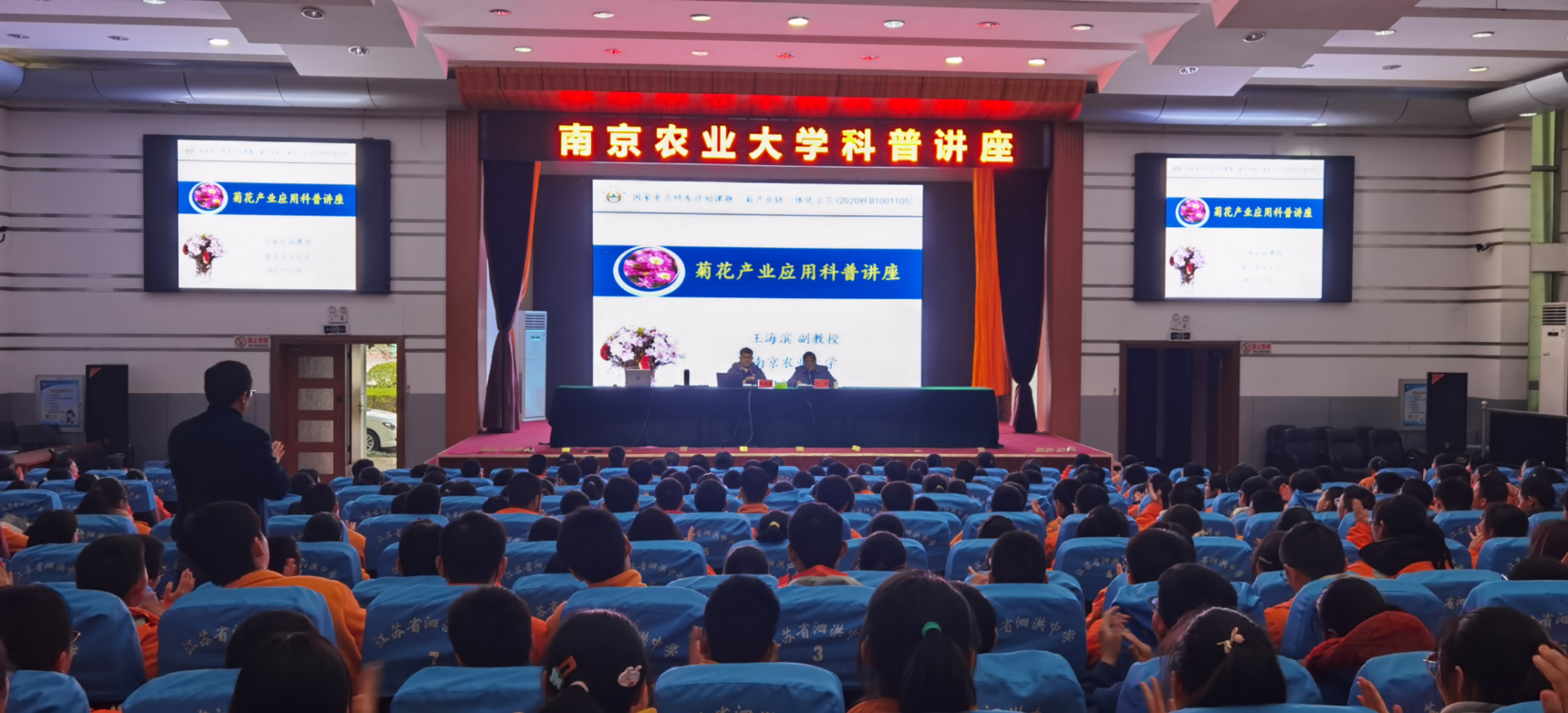 给泗阳致远中学、泗洪中学各赠送十多盆特色独本菊,展开“科技作品进校园”活动,为高中生们展示了各类型菊花品种。11月26日,院党委副书记文习成、副教授王海滨及辅导员鲁月再赴致远中学、泗洪中学开展科普讲座。