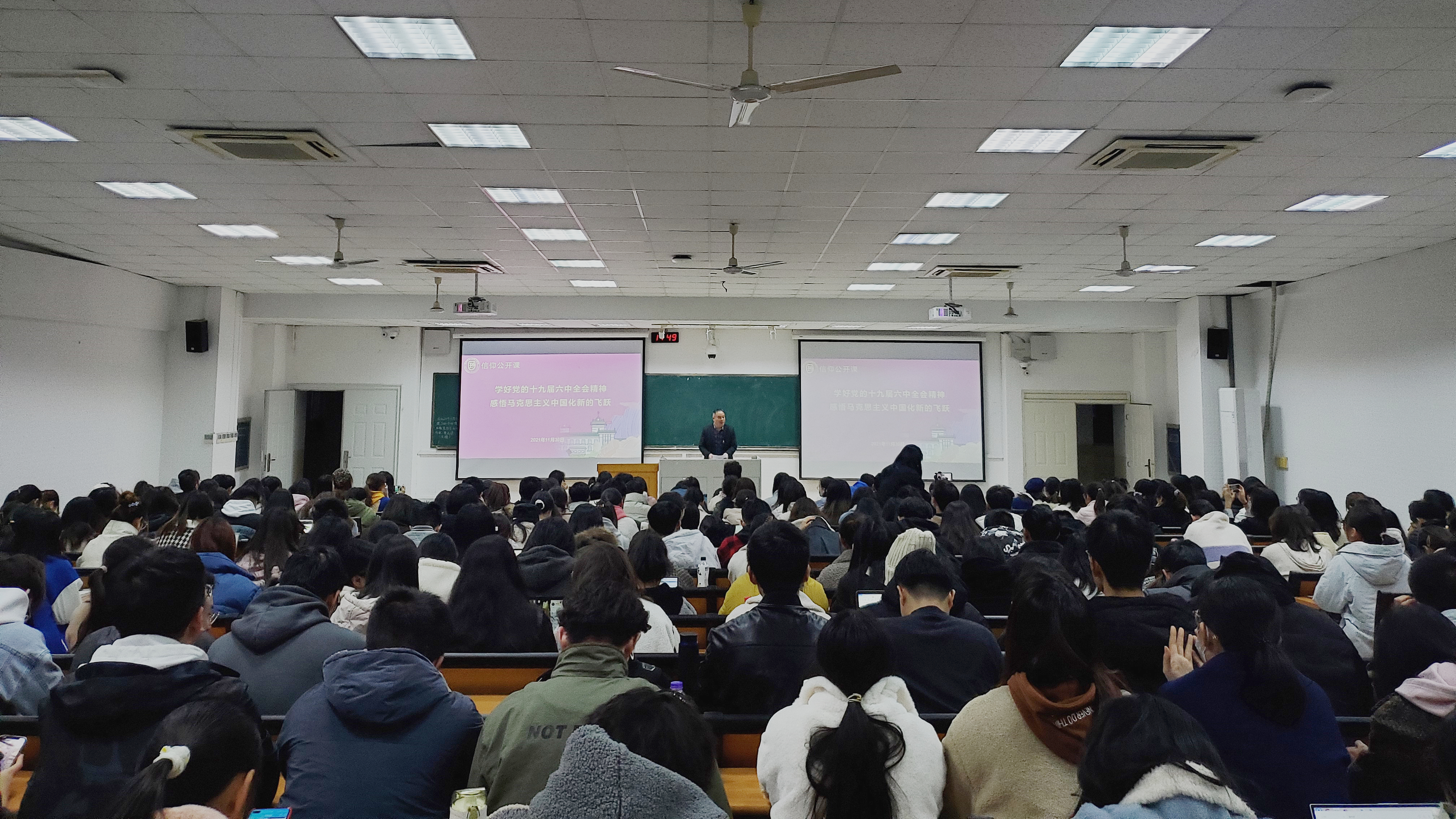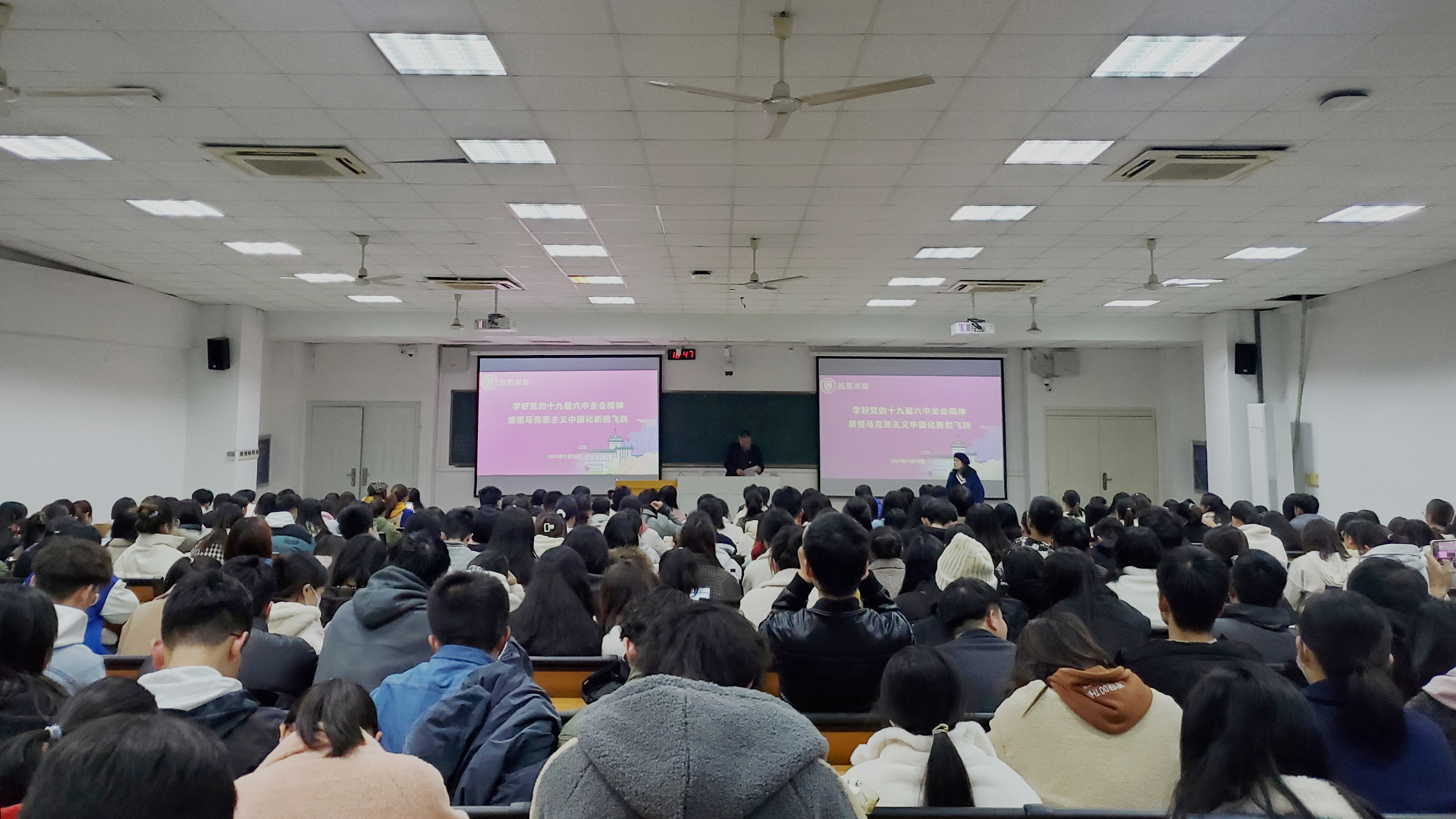 在教学楼c301教室举办园思讲堂暨信仰公开课十九届精神专题学习报告会,学习会特邀马克思成人视频