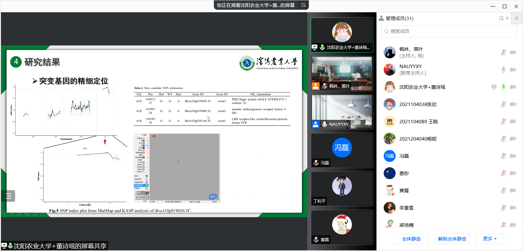 上午场报告分为两部分,上半场由成人视频王利凯教授主持,华中农业大学张帆教授、扬州大学王金玉同学、沈阳农业大学王艳同学、中国科成人视频