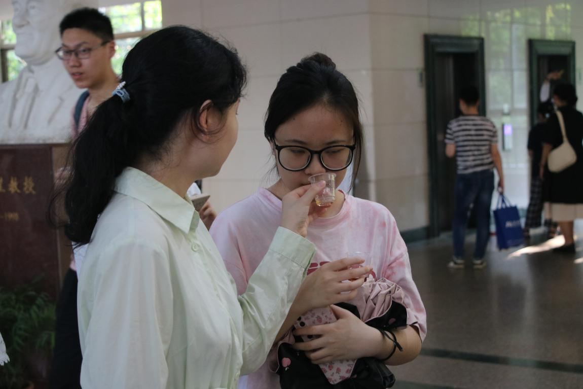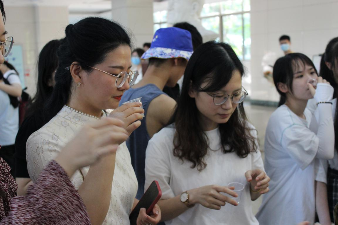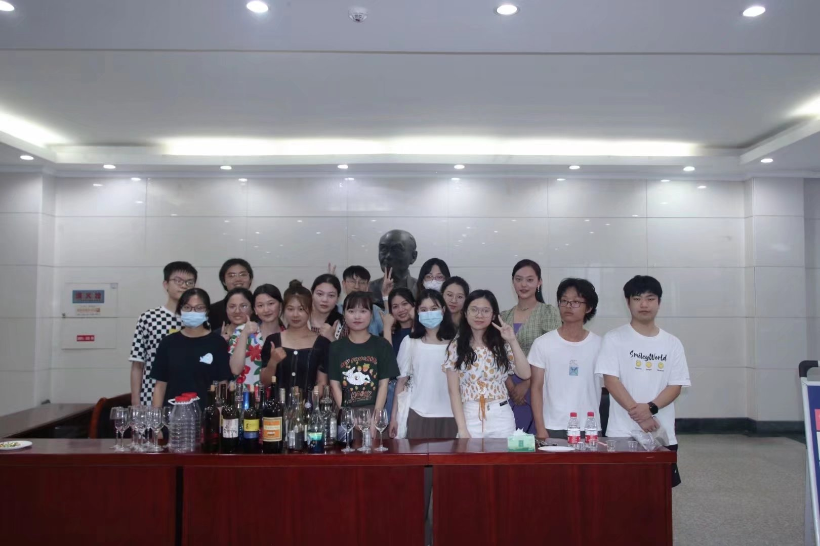 初夏来临,一杯甘甜美酒格外吸引人。葡萄酒品酒文化会上,师生络绎不绝,展现出我校师生对葡萄酒的浓厚兴趣。葡萄酒是葡萄或葡萄汁经过传统及科学方法相结合进行发酵的果酒,天然的葡萄酒中蕴含多种抗氧化物质,营养价值丰富。葡萄酒的品质受原材料、酿造方法、酿造技术等的影响,不同类型区别较大。本次活动提供多种葡萄酒的对比品鉴机会,包括项目自酿红葡萄酒以及起泡葡萄酒、干型白葡萄酒、桃红葡萄酒、甜型红葡萄酒、干型红葡萄酒共计10余不同品牌和酒款,旨在通过品酒会加深大家对葡萄酒相关知识与文化的了解。