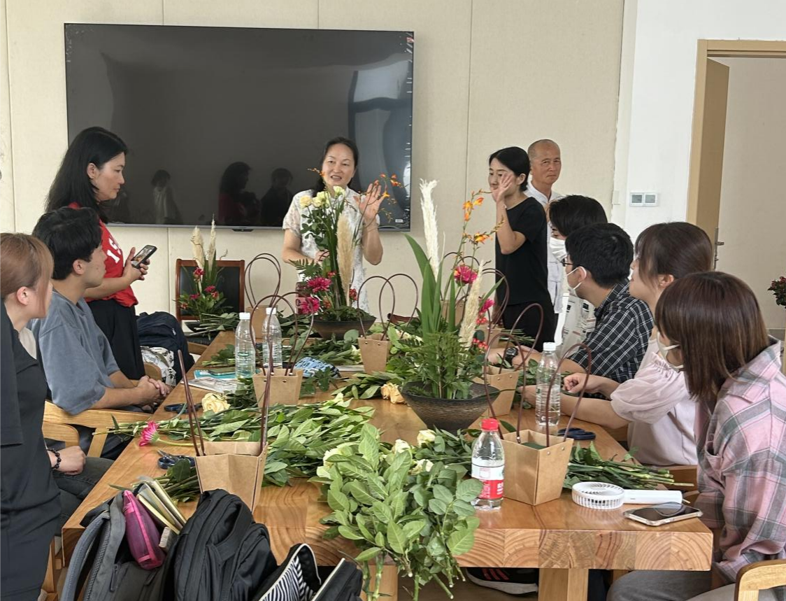 为访学团准备了插花、茶艺等专业实践操作课。江苏省花木协会插花艺术专业委员会会长唐梅英分享插花艺术,并现场进行插花示范教学。访学团在欣赏美丽花卉的同时,学习到插花的基本知识和技巧,激发学生的审美情趣和动手能力。