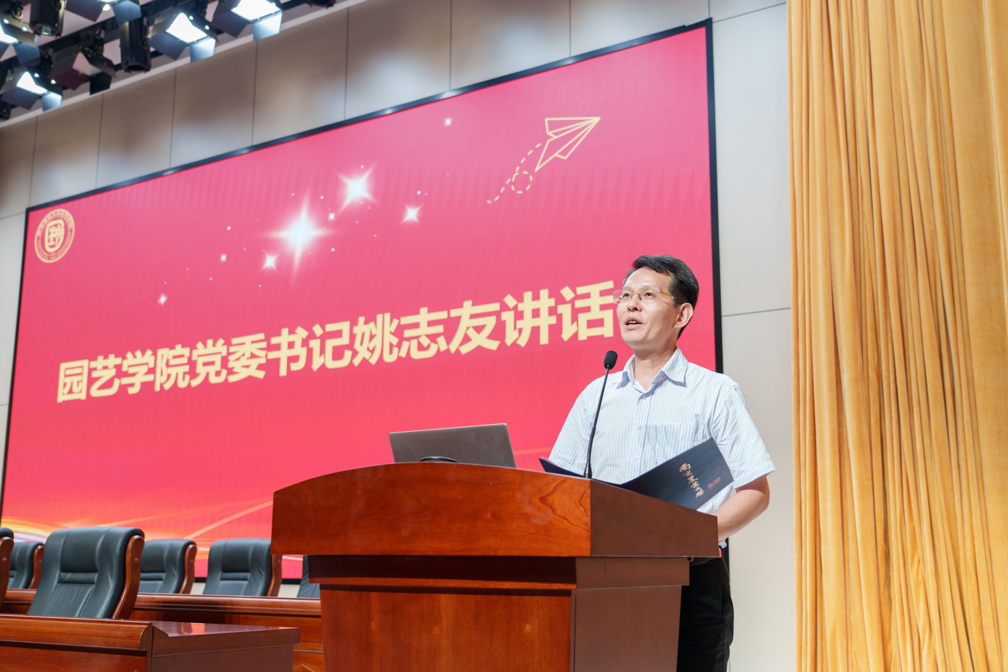 姚志友讲述了成人视频 的办学历史和辉煌成就。他希望大家以校训、院训精神为引领,铸就诚实正直品格;保持空杯心态,主动学习,不断完善自我;培养合作精神,通过沟通交流提升理论水平;树立社会责任感,心怀天下、勇于实践,为中国式现代化提供南农园艺人的答案。
