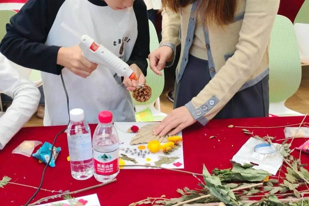 社团联合会、园艺协会、青野手工社承办。旨在为校友家庭打造一场沉浸式的亲子体验。活动伊始,园艺协会的同学带来了一场生动的“自然小课堂”,为大小朋友们讲解了干花的知识与植物背后的故事,在孩子心中播下了探索自然奥秘的种子。