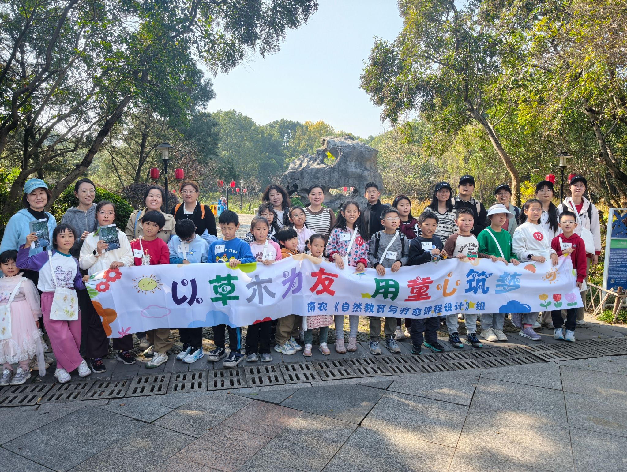 工会和南京市园林和林业科学研究院支持的“以草木为友,用童心筑梦——儿童自然教育活动”在南京中国绿化博览园顺利开展。活动由课程组成员王子宁、文逸凡、陆宇航、吴玥晗、姚晓晨合作主持,王欣歆老师指导,四十余位成人视频教职工及其子女参与。