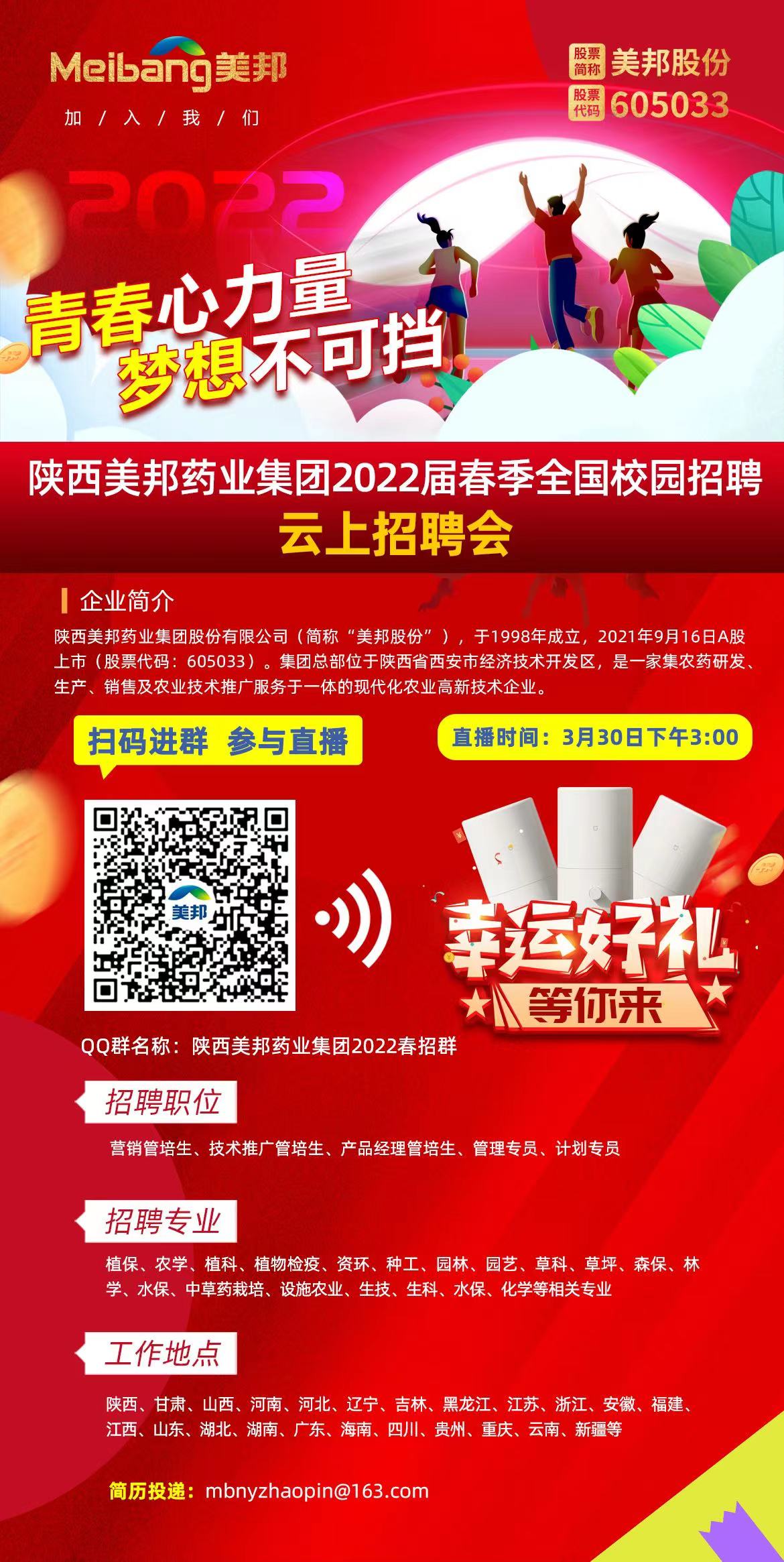 【本研】陕西美邦药业集团2022届春季校园招聘简章