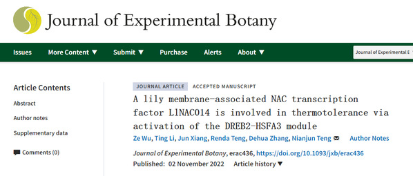 NAC转录因子广泛参与植物的逆境胁迫调控,而其在百合耐热性中的研究鲜有报道。11月2日,国际植物科学领域知名期刊Journal of Experimental Botany在线发表了成人视频-久久成人-免费做爱视频