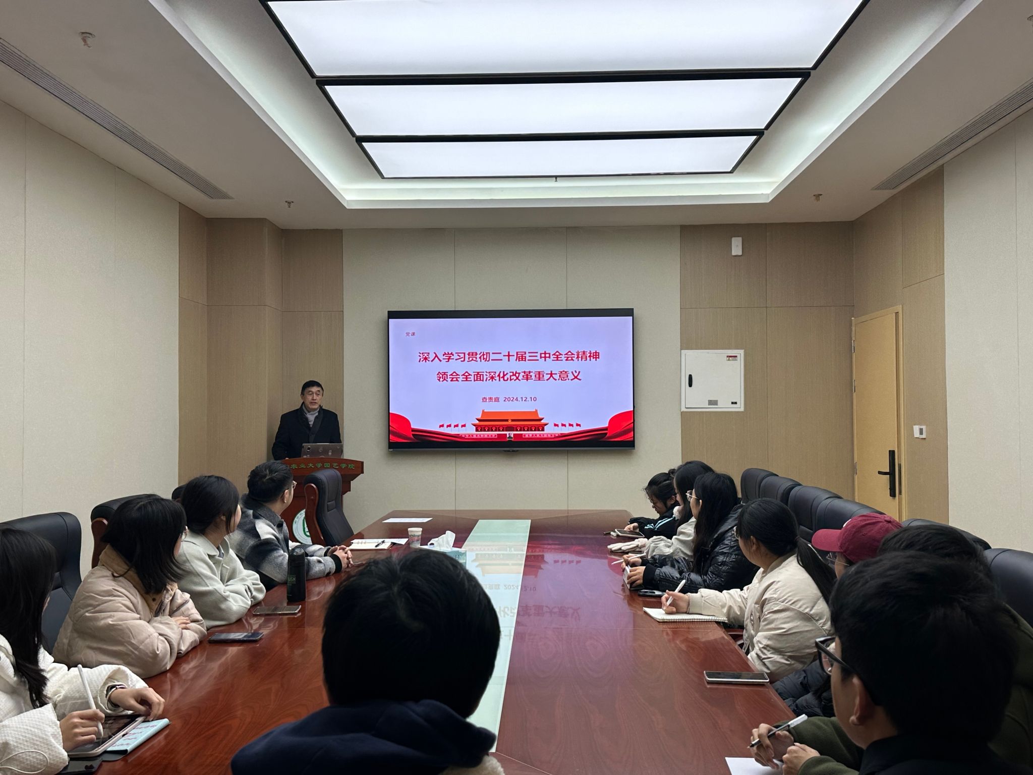 20241210日,中药茶学本科生党支部联系信息化建设中心主任查贵庭为党员们上了一堂《深入学习贯彻二十届三中全会精神,领会全面深化改革重大意义》专题党课,并以此为契机,开展了“贯彻党的二十届三中全会精神,争做强农爱农兴农的时代新人”学习会。